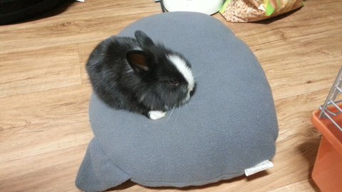 이게 리베의 침대 겸 소파!! 다이소 3천원짜리 쿠션! 두둥!