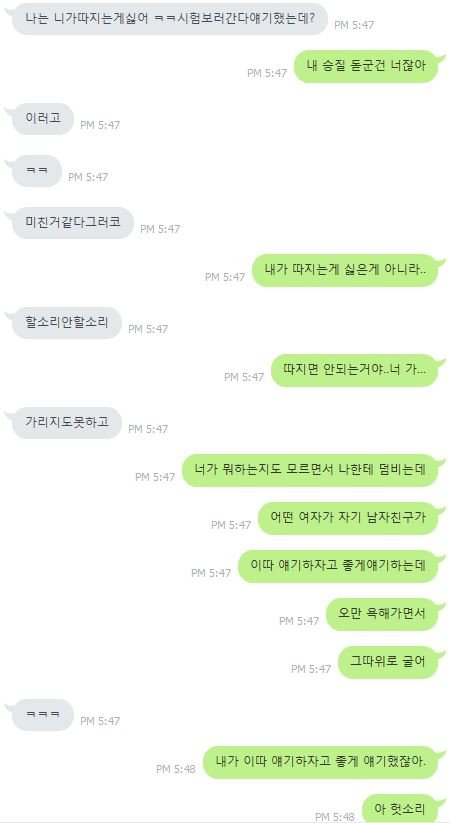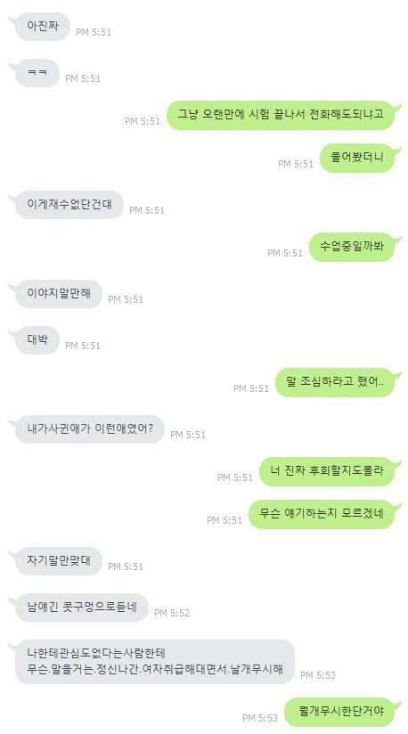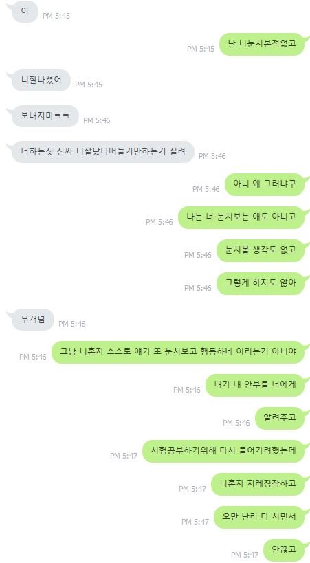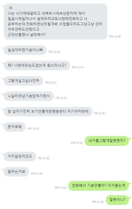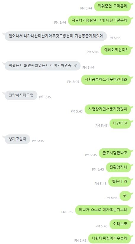 일단 제가 시험을 치느라 아침에 일어난 순간부터 2시까지 연락을 안했습니다.