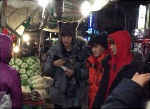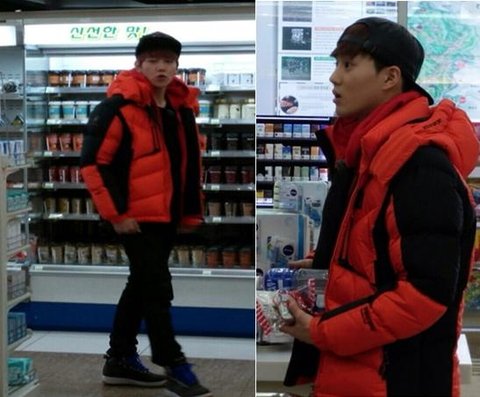 촬영 중 배가 고픈지 편의점에서 간식 사 먹는 백현과 수호 ~