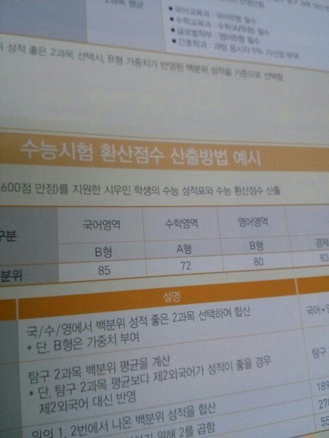 정시 예시표에 나온 시우민 학생