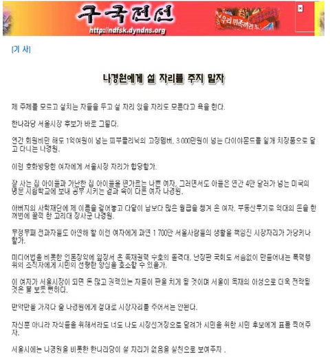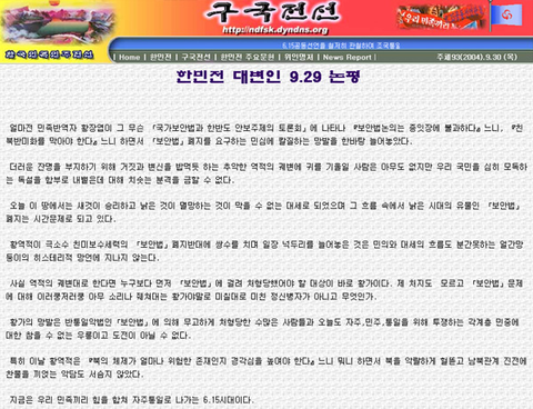 이것에 대한 근거로 구국전선이라는 사이트는 북한이 남한 선전 도구로 이용하고 있는 사이트다