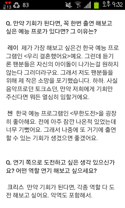레이 인터뷰대박대박대박진짜감동이야ㅠㅠㅠㅠㅠㅠㅠ