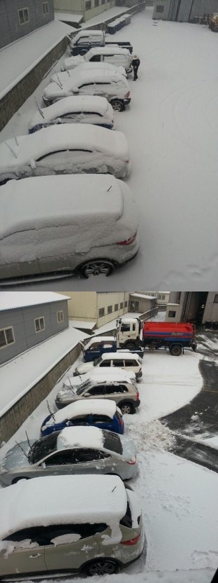 사람들이 자기들 눈을 다 치우고, 눈을 모두 제 마티즈 뒤에