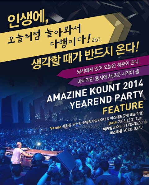 제가 쿠팡에서 찾은 연말파티는12월 31일에 워커힐에서 진행하는 카운트다운파티 Amazine Kount 2014! 인데요