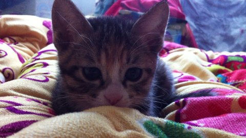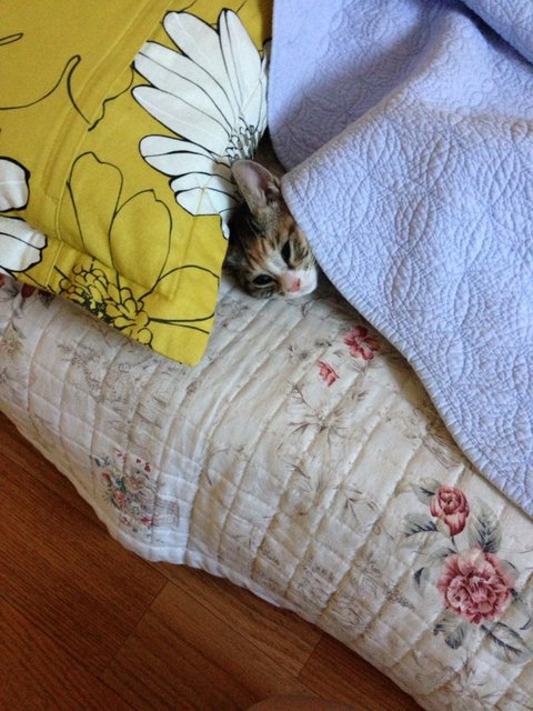 이불 속에서 꼬물꼬물 거리길래 뭐하나 이불 들쳐봤더니 저렇게 이쁜 표정 짓고 있었어요.^^