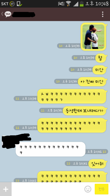 무심코 젤 위에 뜨던 채팅창으로 사진을 보내버린거에요ㅠ