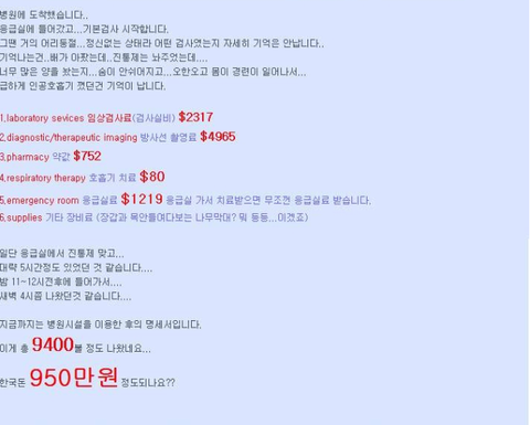 맹장수술 하려면 400만원 하던 수술비가 1500만원으로 오르게 되고