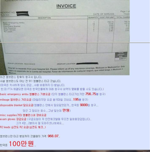 그뿐만아니라 응급차 실려가는것까지 돈을 내야합니다.
