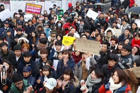 전두환대통령때.. 언론사전검열하고 방송 내보냈습니다. 지금 조선일보는 무슨 철도민영화 하나 떄문에 어이없게 퍼지는 시위라는 식으로 말하고 있고요