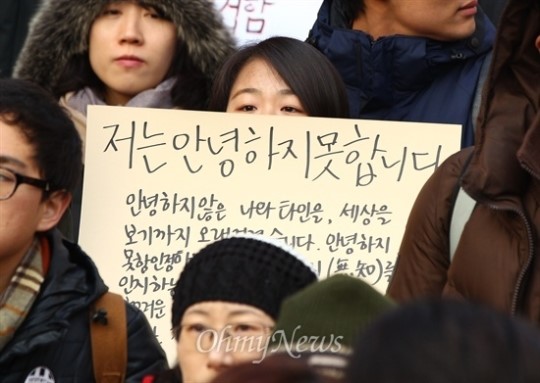 이건 대학생들이 평소에 사회에대한 불만을 품고 있었다는거겠죠. 또 그만큼 우리나라 정치가 지금 거꾸로 가고 있는것같습니다..