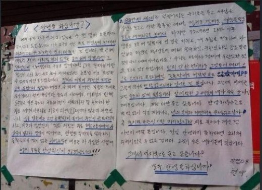 이글을 사진으로 찍고 페이스북등 sns로통해 퍼져나가기 시작했습니다.