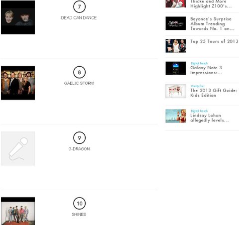 2013년 전세계에서 가장 앨범을 많이 팔아치운 가수 10위 샤이니