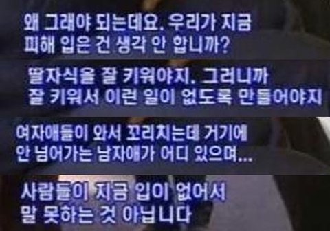 와 가해자부모들이랑 아빠진짜쓰레기같다. 근데 막말한형사가 더가관같음 14살한테 유혹했냐니 ㅋㅋ 진짜 쓰레기같네 하긴 우리나라 형사중에 쓰레기같은형사많음. 우리나라형사들은 가해자를 심문하기보다 피해자를심문하니까 ㅋㅋ 피해자가 더고통받고 가해자는 당당한 우리나라^^ 자랑스럽단