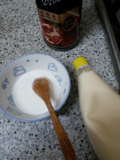 마요네즈 ½ 큰술 + 식초 대신 흑초 ½ 큰술