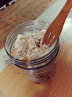 요거트 드레싱 안에 오트밀과