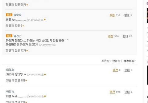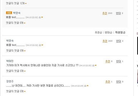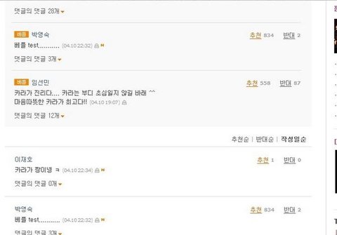 좀 옜날꺼 퍼온건데..아무튼 네이트랑 판도 요즘 댓글 추/반 조작하는 사람이 있는거같은데 운영자님 이거 관리하셔야 하는거 아닌가요..;;