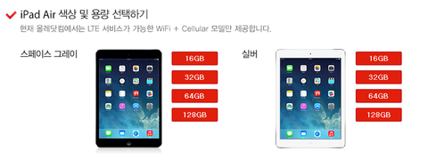 아이패드 예약하려고 통신사를 알아보다가 저는 KT로 결정했습니다. 올레닷컴에서는 LTE 서비스가 가능한 와이파이 + Cellular 모델을 제공하고 있는데요. 16GB, 32GB, 64GB, 128GB 등 다양한 데이터 용량과 스페이스 그레이 및 실버색상 중 본인의 취향에 맞게 색상을 선택하신 후, 색상 선택 다음에 개통하시면 됩니다. 저는 실버가 조금 더 끌리네요. ㅎㅎ