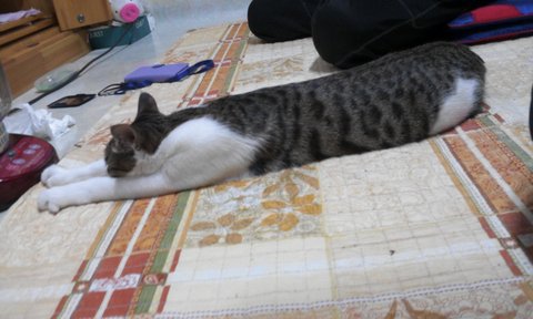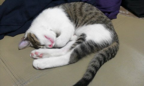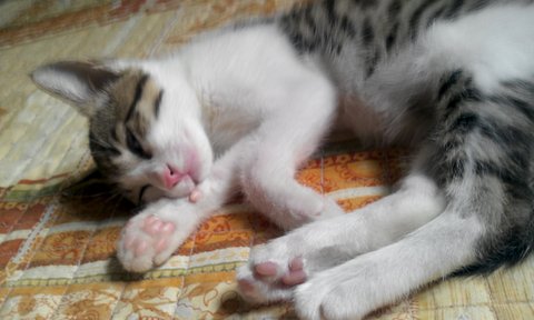 장마철에 지하에서 몇일동안 새끼길고양이가 배고파서 일어나지도 못한상태였고 장마철에 눅눅하고 습한구석에서울고있는걸보니 불쌍해서 종이컵에 물을갔다줬는데 잘먹더라구요ㅎ 머리한번쓰담해주니까 따라와서...애기때데리고와서 이름이 애기~잘키우고있습니다ㅎㅎ