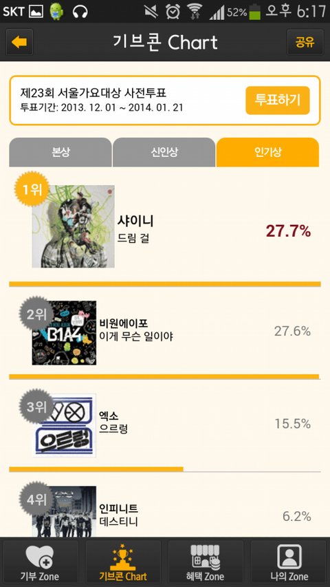 인기상해 인기상 인기상이 투표100퍼니까