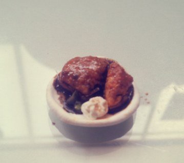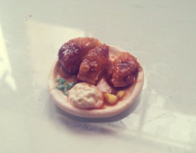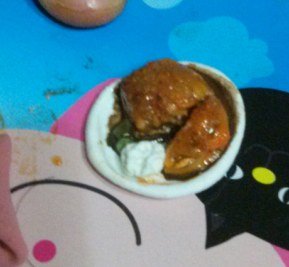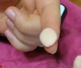 1. 일단 돈가스 모양을 내기위해 천사점토 (저희는 천사점토가없는관계로밀가루 반죽을 사용했어요)를 이용해 돈가스 모양을 내줍니다 . (2개) / 사진크기가 왔다갔다 할거에요 ,, 크기편집하는데 다 맞추기가 힘들더라구요 ,