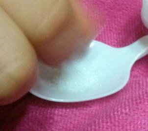 3.저흰 색모래가 없는관계로 색모래를 만들었어요 일단 아무 숟가락을 준비한후 그위에 설탕을 쓸만큼 뿌려주세요 (색모래가 있으면 색모래를 사용하세요 )