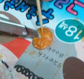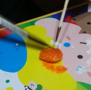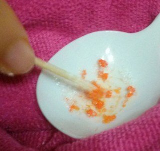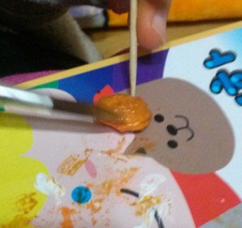 4.이쑤시개에 돈까스색 을 뿌린후 설탕과 휘휘 저어주세요 ( 저희는 주황색으로 했더니 너무 밝더라구요 )