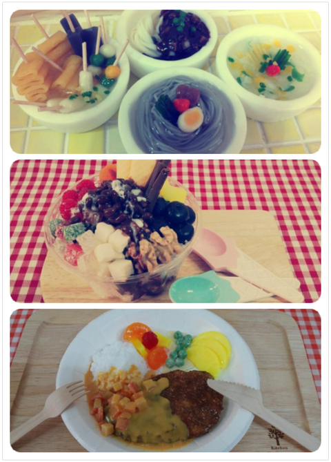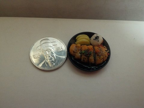 16.초록색 클레이를 ( 천사점토를 물감이나 사인펜으로 초록색으로만든것 )을 샐러드 는....아니고 장싱품으로 돈까스옆에 올려줍니다
