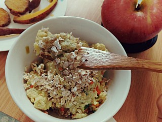 고구마 말랭이s / 사과 ¾ / 달걀찜 + 오트밀