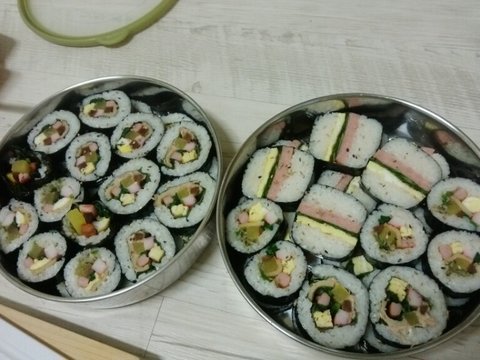 스팸넣은 무스비김밥과 자세히보면 세가지김밥이랍니다 왕김밥, 참치김밥, 멸치땡초 김밥