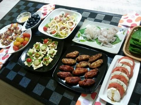 카프레제 샐러드와 카나페, 샐러드, 베이컨야채말이 ㅎㅎ