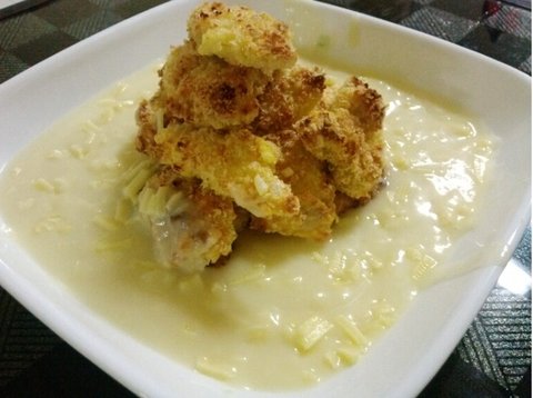 고구마샐러드 밑에깔고 닭가슴살 양념해서 튀긴뒤 인스턴트 스프를 주위에 붓고
