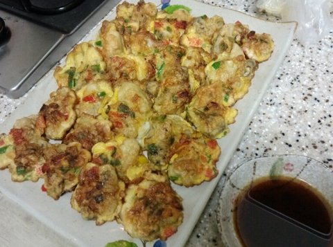땡초랑 파프리카 다져넣은 계란물 입혀서 만든 굴전