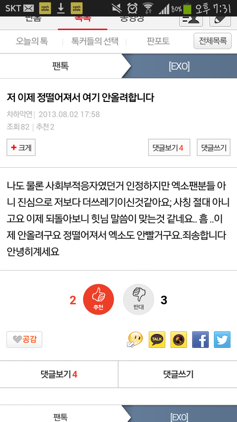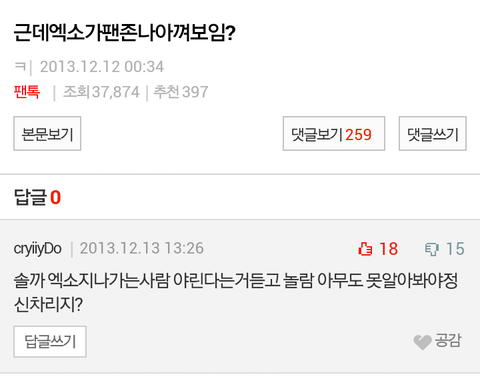 저기 팬톡베스트글 댓글부터가 너 충격이었다