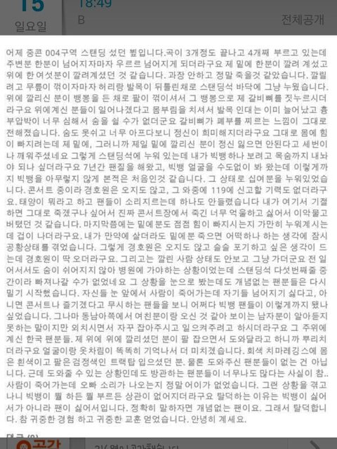 빂들 제발 콘서트때 누군가가 깔리면 제발 도와줘요..
