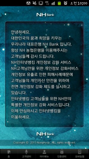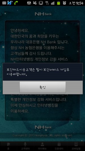 그런데 몇일전부터 제가 자주 사용하는 농협스마트폰뱅킹에서 알림이 뜨더라구요.