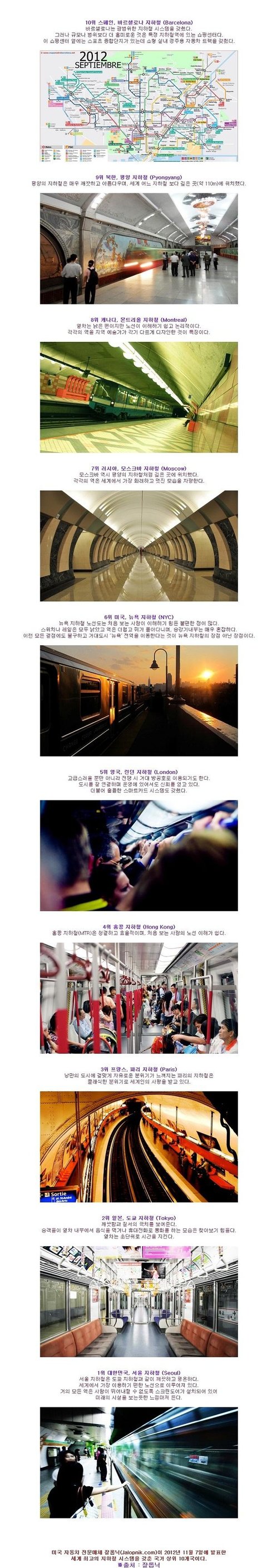 외국 언론이 선정한 세계에서 가장 우수한 지하철 BEST10