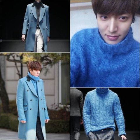 보기 드문 하늘색 컬러의 코트도 눈부시게 멋졌고 구찌의 앙고라 니트를 입고 셀카를 찍은