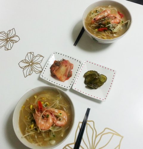 주말 점심에 해먹었는데 우동 그릇이 두 개 뿐이라서.. 언니들 것만 셋팅해서 찍었어요~