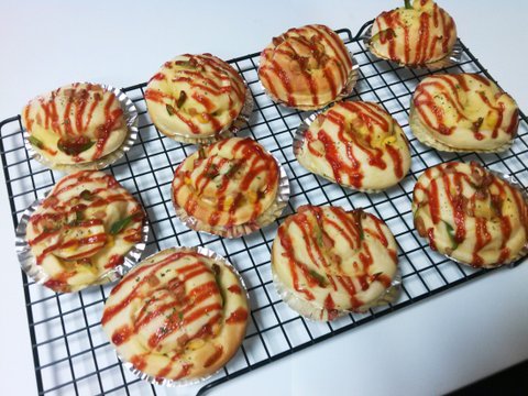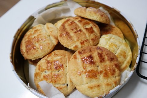 두 개는 기본 격자무늬, 하나는 소보루 올려서 만들었어요.
