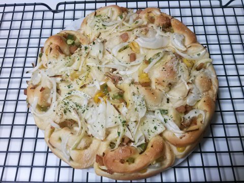 고구마무스를 두른 베이컨 피자