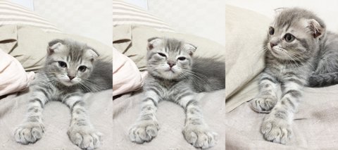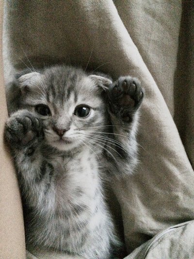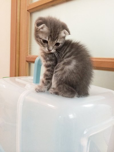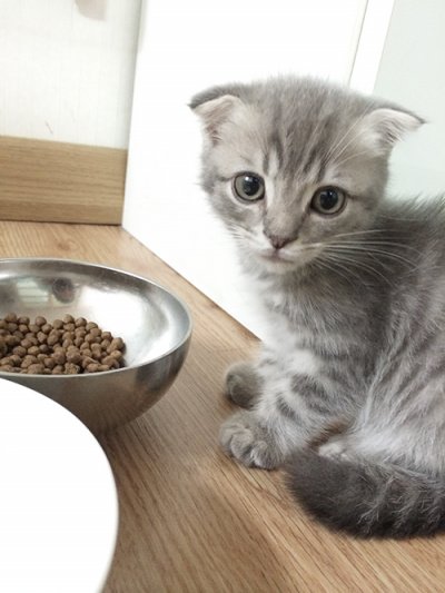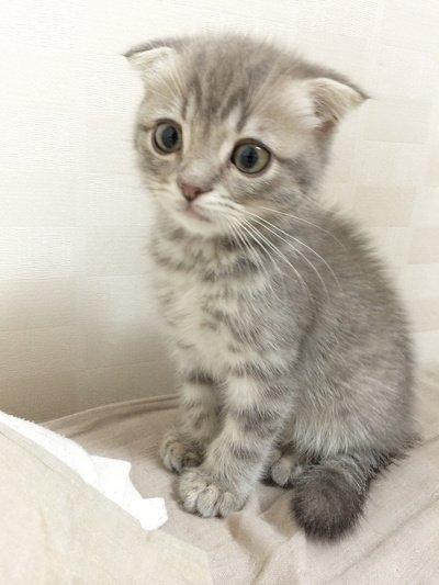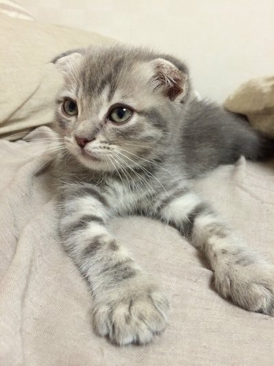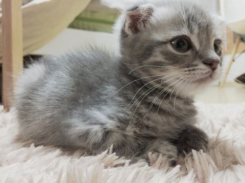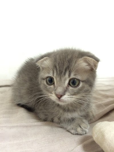 태어난지 2개월 갓 넘은아가. 귀가 예쁘게 접힌 스코티쉬폴드 냥이