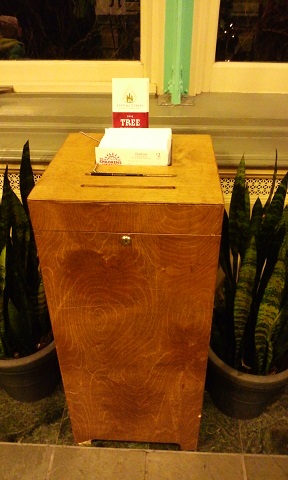 그래서 트리 사이사이에 이러한 모금함이 있었어요.