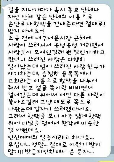 모르는 사람이 건네는 무언가도 절대 받지마셔요