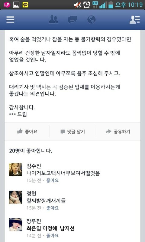 모든분들 조심하세요 택시는 꼭