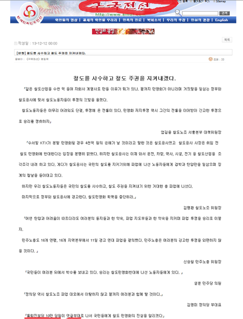 각종 포털사이트 댓글로 선동하고 철도 파업지지하는 척 하면서
