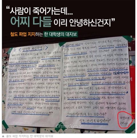 ->진보신당당원의 철도파업지지 대자보로 사회 이슈화 시킴