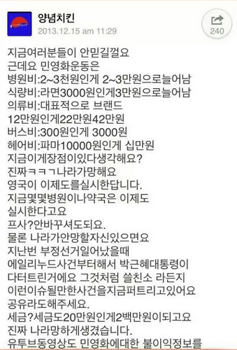 페북및 카스에 민영화선동 괴담을 퍼나르고
