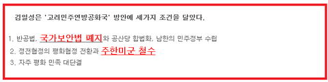 또한 북한은 김일성이 주장한 평화 및 민족주의 연방제체제를 하자고