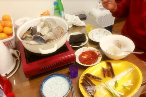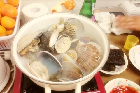 조개찜에 홍합탕에 과메기랑 청하 한잔했어요~^^