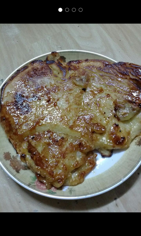 결국 그 10개정도 나올반죽 한꺼번에 전부 팬에다가 다넣어서 걍 특대사이즈로 굽기로하고 우선 프라이팬에 반죽 반정도를 올림.
